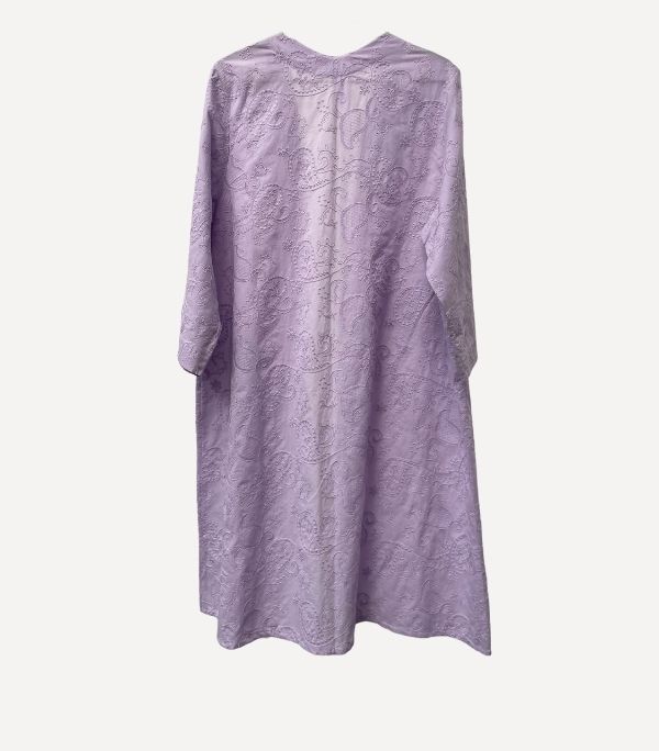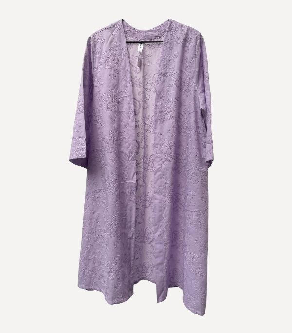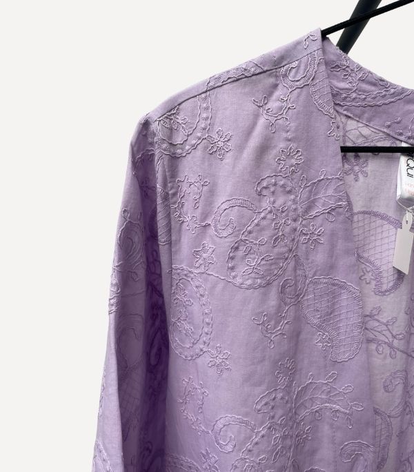 El kimono Lila Bordado combina la delicadeza del tono lavanda con la riqueza del bordado artesanal. Una prenda luminosa, femenina y con un aire romántico que realza cualquier conjunto sin esfuerzo. Su textura bordada aporta cuerpo sin perder fluidez, haciendo de este kimono una pieza especial tanto para el día como para la noche.