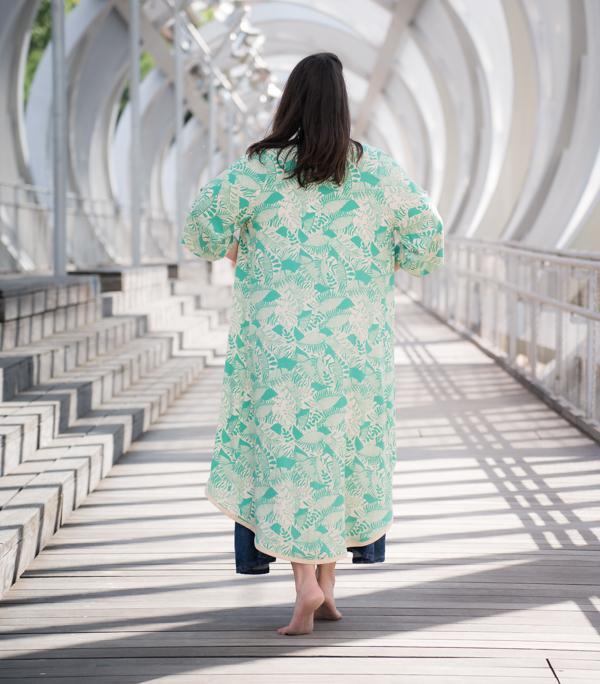 Ideal para usar como abrigo ligero sobre vestidos, trajes de baño o un look relajado de lino.